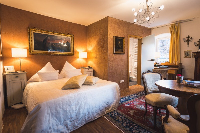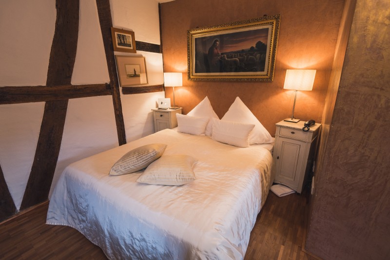 Das Zimmer befindet sich im 1. OG des Denkmalgeschützten alten Pfarr- und Domänenhaus zu Wollbach.